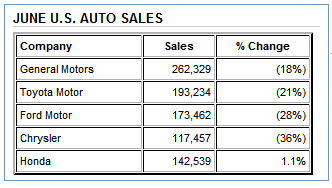 Auto sales were generally dismal across the board, with Honda the only bright spot as reported in an Auto Makers Report by the Wall Street Journal.