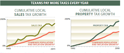 While local sales taxes increased by almost 170 percent from 1993 to 2011, property taxes grew by 188 percent from 1992 to 2010. Compare that to slightly more than 120 percent growth in combined population and inflation during those years.